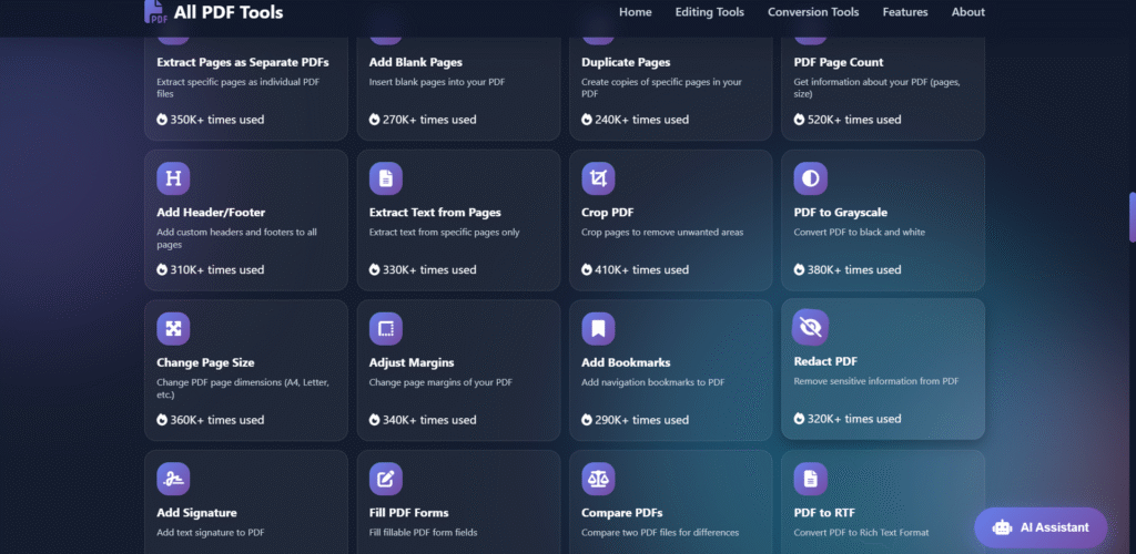 As of 2025, the site now offers 60 unique PDF tools, up from previous counts, reflecting ongoing updates to meet user demands. These tools cover everything from basic edits to complex data extractions, making it ideal for anyone searching for best PDF tools online free. No more switching between apps—do it all in your browser. Let’s break down the categories and spotlight the stars that will transform how you work with PDFs.